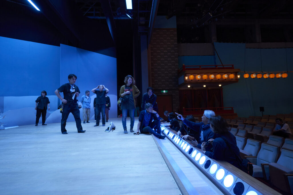 今までは舞台で使うタングステンライトで、劇場にある何種類かのブルーを使ってたのだが、最後はすべてLEDライトでセッティングされているし、舞台の書き割りの下からフットライトを当てたりもできたので、フルカラーのLEDライトで様々な色味を創っていきました。