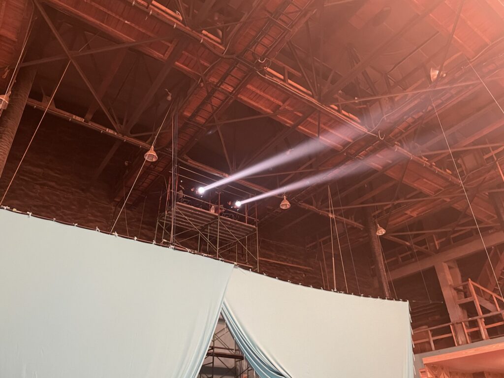 そう。美術部が日乃本座の設計図面にピンスポの位置を組み込んでくれて、高さも計算できた。最終的に、後でCGになる客席とも矛盾しない形になったんです。