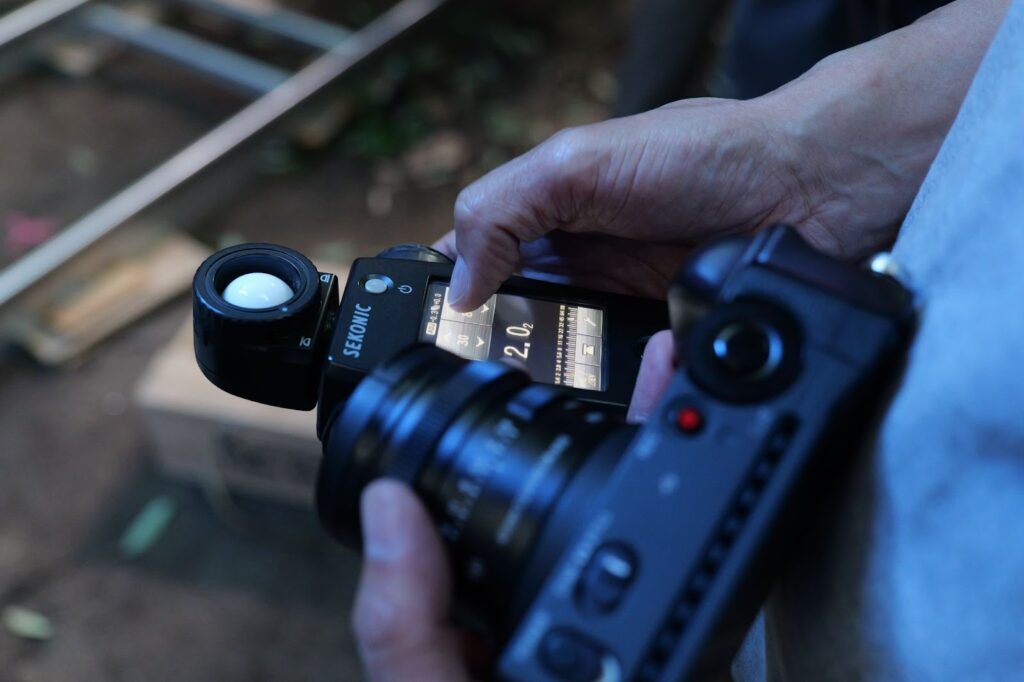 このフィルムの特性を最大限に引き出すため、撮影現場ではSEKONICの露出計が活躍します。