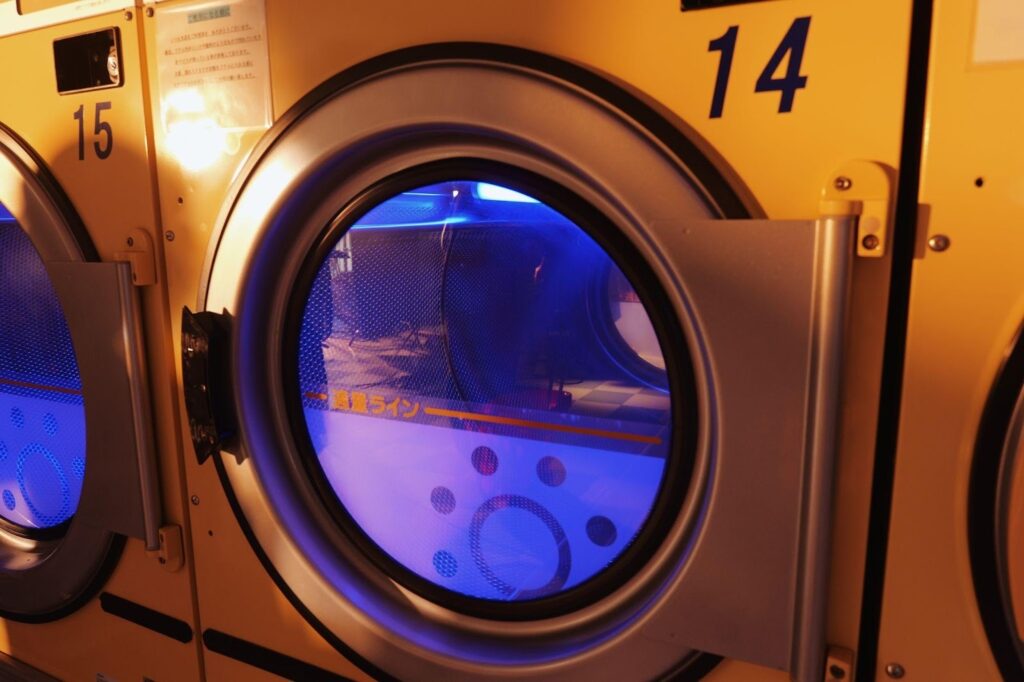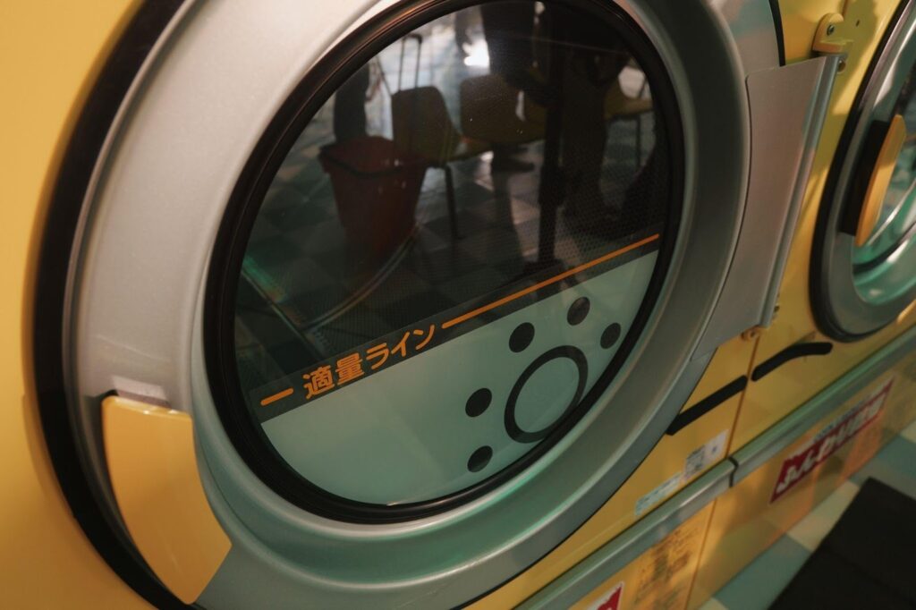 狭いコインランドリーの空間で、被写体との距離を極限まで詰める。