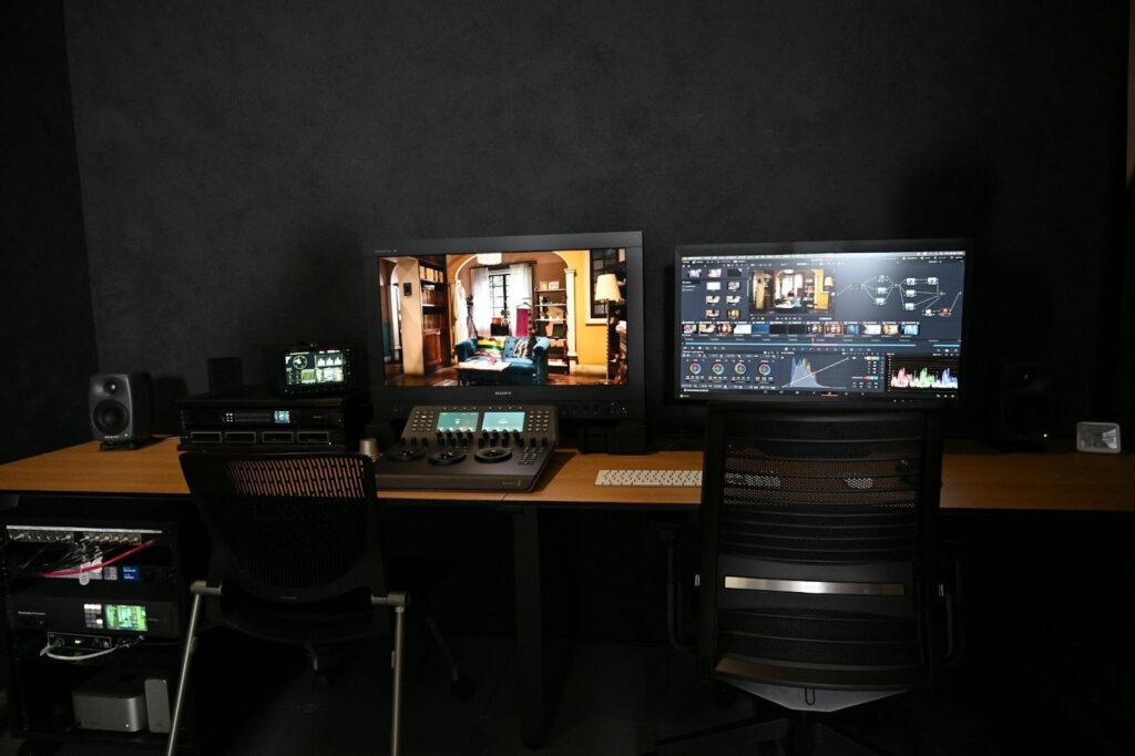 BVM-HX3110は厳密な色評価・グレーディングの“基準”として、BRAVIA 9は大画面TVでの見え方=“実視聴環境”の確認用として置かれている。DMPC Japanでは撮影スタジオとポスプロが同一施設内にあるため、この2つの表示系で確認しながら撮影側へ戻る往復を短くし、仕上げ工程の手戻りを減らすことを狙っている。